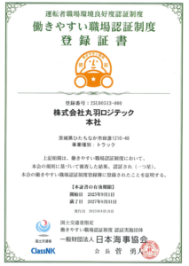 この度運転者環境良好度承認制度の「働きやすい職場認証制度」を取得いたしました。 制度の内容につきましてはトラック事業者の取組みを見える化することで、求職者の運転者への 就職を促進し、人材確保の取組みを後押しすることを目的 […]